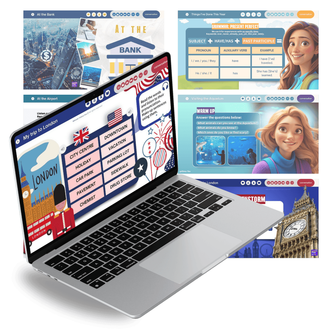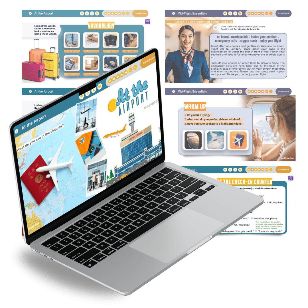 Ajude seus alunos a conquistarem confiança ao viajar com nosso Pack de Travel English! Um material completo, com slides e worksheets, que engloba todas as situações de viagem com recursos pedagógicos incríveis como áudios, slides atrativos e muitos exercícios de speaking e listening!