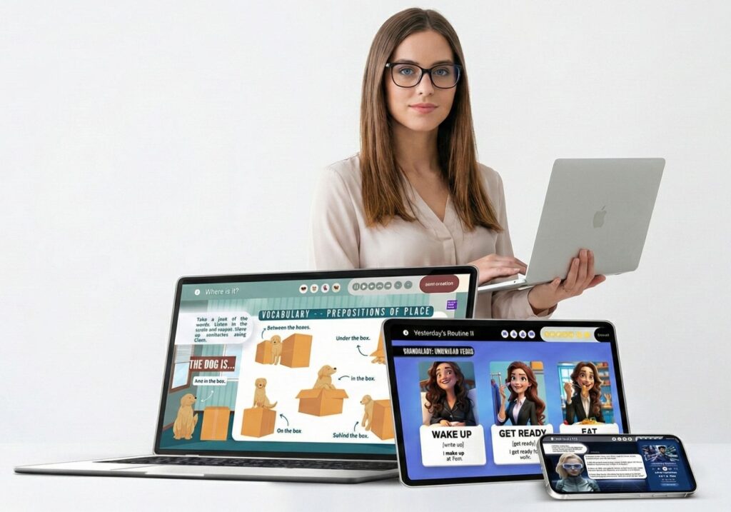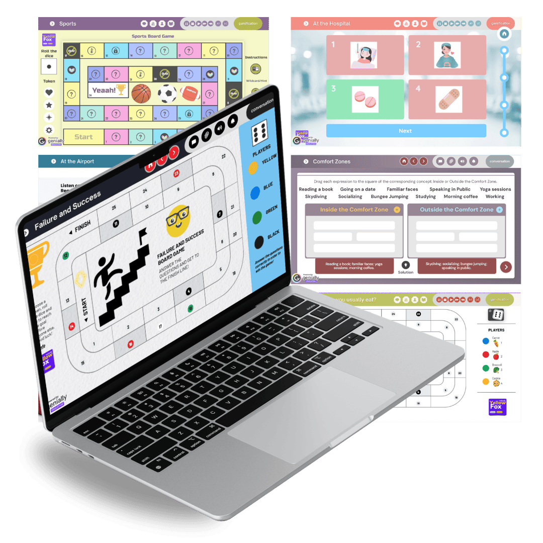 São mais de 40 jogos e lessons gamificadas para deixar suas aulas ainda mais dinâmicas! Com board games, memory games, hangman games e muito mais!