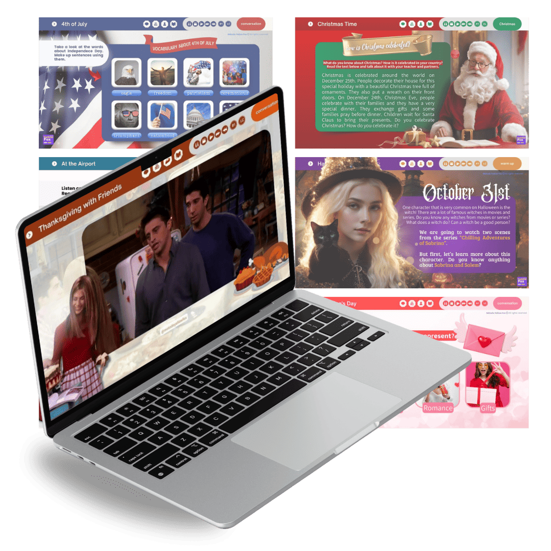 Torne as aulas mais interessantes com lessons temáticas de datas comemorativas como Halloween, Christmas, Thanksgiving, Saint Patrick's Day, Easter e muito mais! Lessons ótimas para expansão de repertório cultural e muita prática de speaking!