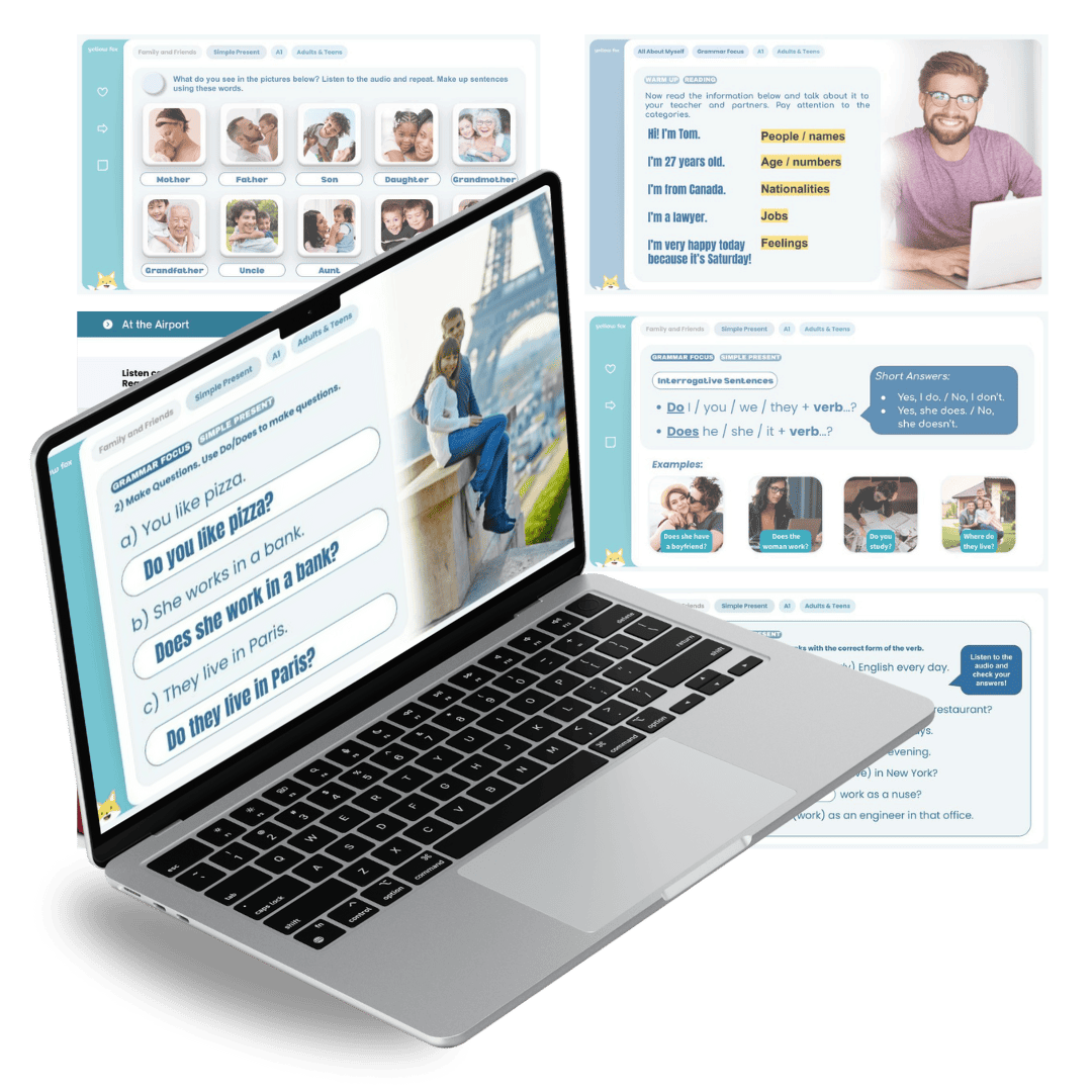 Nesse pack, você terá acesso à 12 lessons de grammar para adultos iniciantes (A1/A2) que trabalham o verb to be, present simple, present perfect, past simple e muito mais! Tudo de forma didática, misturando uma abordagem comunicativa com a abordagem lexical!